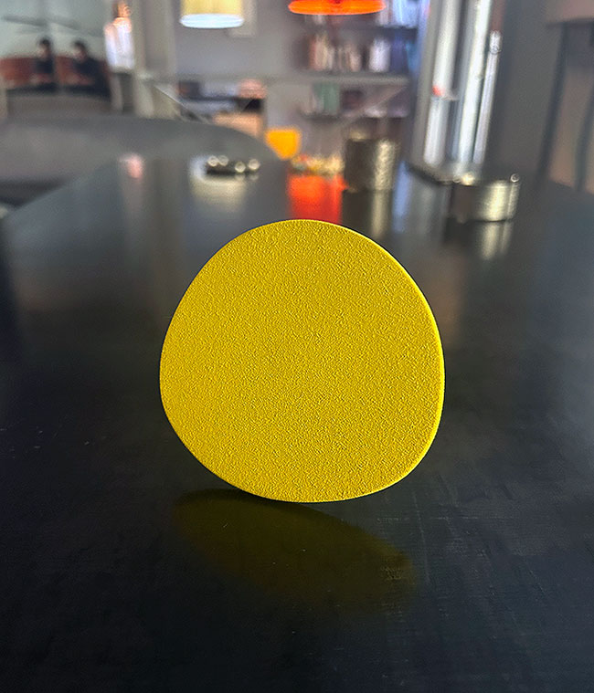 Un cercle groc dibuixat per Tore Svensson en porcellana es converteix en punt de partida. El seu fermall Yellow pren la simplicitat d’un gest i l’eleva a símbol: aquell traç rodó i essencial que Joan Miró va transformar en signe universal, a mig camí entre l’infantil i el còsmic, entre la memòria ancestral i la mirada futura.