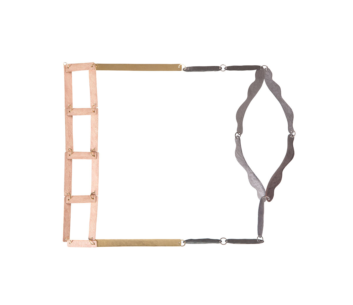 The piece thus becomes an open space. Unlike drawing or painting, contained by edges, once worn, experienced, or observed, the jewellery transcends boundaries. These works have neither beginning nor end. They unfold freely in space and on the body.