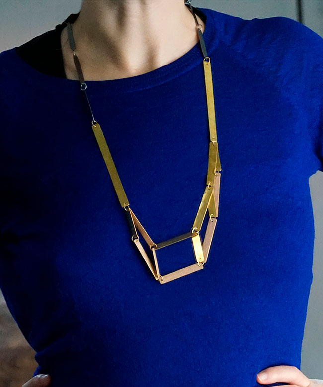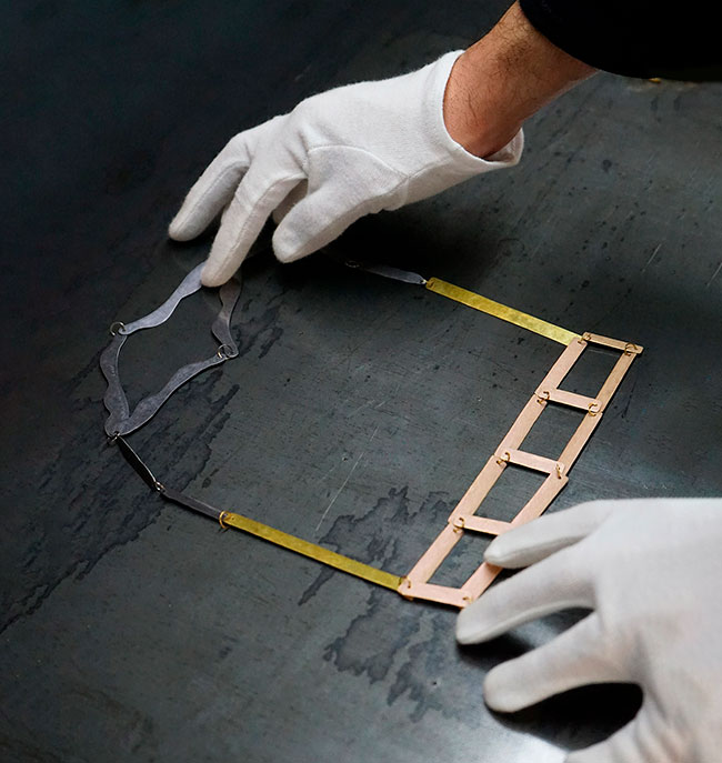 Whether placed, suspended, or worn, Annelies Planteydt’s pieces reveal themselves differently each time. The jewellery is not a fixed form: it reconfigures with movement, in relation to the body, and through the observer’s gaze, in the manner of a geometric abstraction in perpetual evolution. The map I think up for a piece of jewellery may seem to disappear when the jewellery is worn, but the structure remains, says the artist. What fades is the initial scheme. What endures is the internal architecture.