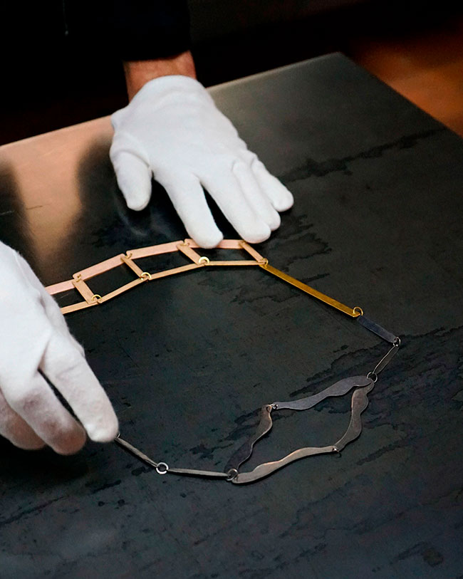 La peça esdevé així un espai obert. A diferència del dibuix o la pintura, delimitats per marges, la joya, un cop portada, viscuda u observada, transcendeix les fronteres. Aquestes obres no tenen ni principi ni final. Es despleguen lliurement en l’espai i sobre el cos.